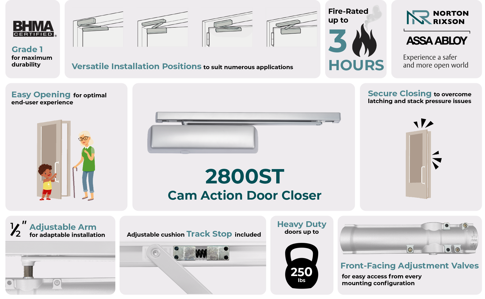 Learn about the additional benefits of the 2800ST cam action door closer available with Norton Rixson below.