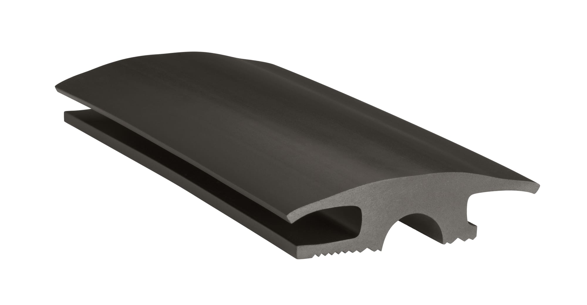 Eco-V® thresholds are manufactured from a bio-based compound that removes 350 tons of greenhouse gases annually. Our material is slightly softer than competitive products, yet just as durable as you’d expect them to be. This aids in the cutting and fitting of the threshold and facilitates easier insertion of the carpet into the holding cavities on the carpet side(s) of the threshold.