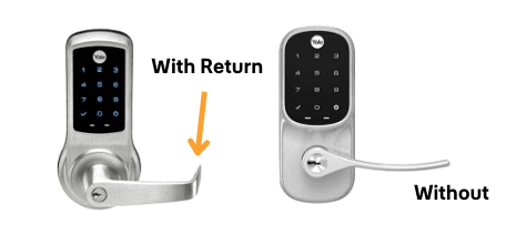 Lever returns are a door handle design that ensures a lever is curved within half an inch (1/2”) or 13mm of the door face. Learn more here!