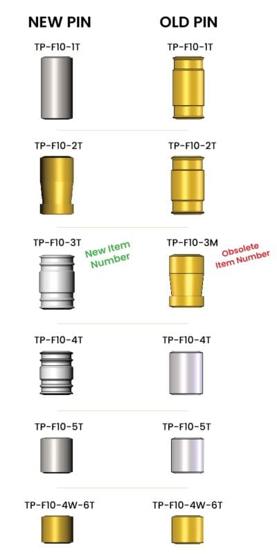 for the new TP-F10-3T item number - No changes on 5T and 6T top pins