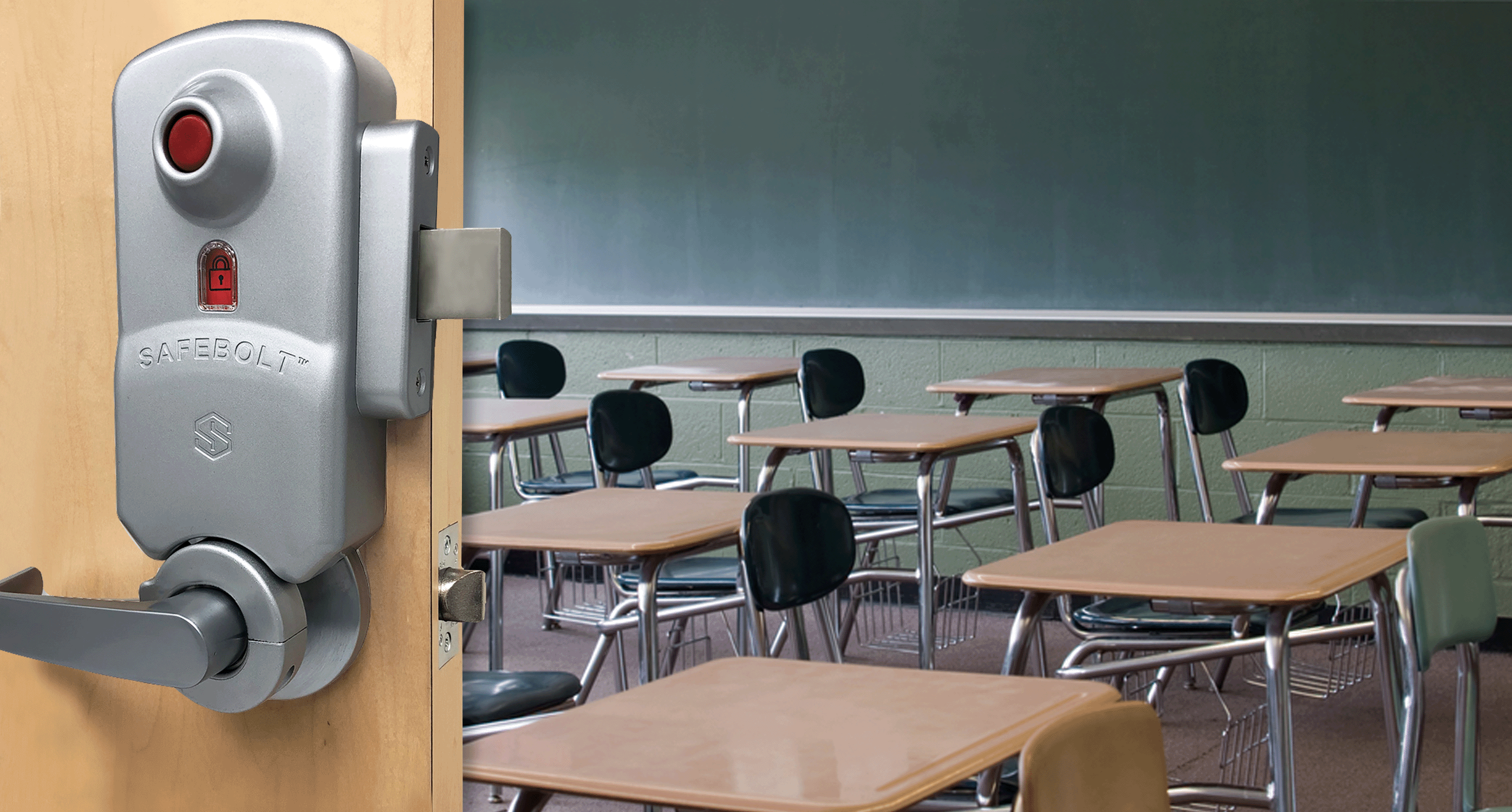 The result is the recently introduced SAFEBOLT™ series, a mechanical red pushbutton lockdown lockset, which installs quickly and easily over existing cylindrical locksets, saving schools the substantial cost of replacing their locksets and keying systems.